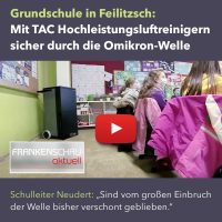 Was aber tun, wenn sich die Gemeinde – als Sachaufwandsträger – trotz Förderung durch das Land und entgegen wissenschaftlicher Empfehlungen dazu entschließt, auf den Kauf von mobilen Luftreinigern zu verzichten? An der Grundschule in Feilitzsch haben Eltern den Gesundheitsschutz ihrer Kinder selbst in die Hand genommen, berichtet der Nachrichtensender BR24 in der „Frankenschau aktuell“.