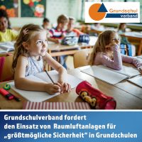 Der Grundschulverband fordert deshalb den Einsatz von technischen Hilfsmitteln zur Absicherung der Grundlegenden Bildung in Deutschland! Ein Wegfall der Maskenpflicht im Unterricht sei zwar aus pädagogischer Sicht sinnvoll an den Grundschulen, aber in der aktuellen Situation „nur dann vertretbar, wenn dies mit flankierenden Maßnahmen abgesichert wird“, sagte Bohn. So müsse durch den Einsatz von Raumluftanlagen „größtmögliche Sicherheit gewährleistet sein“, sagte der Chef des Grundschulverbands.
