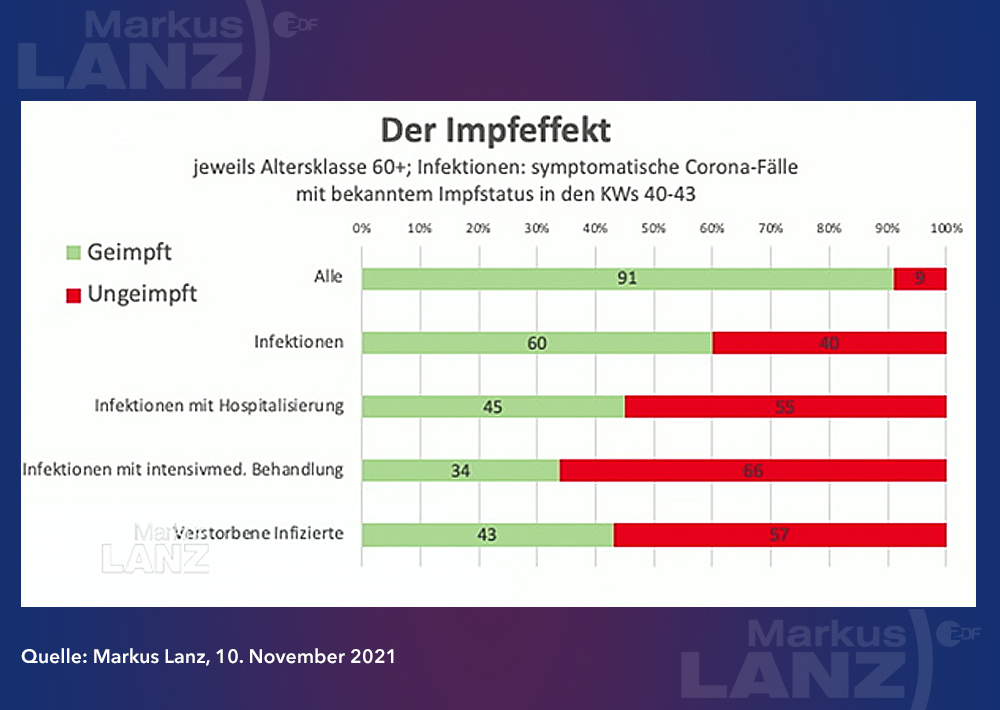 Anfang November wurde in der ZDF-Talkshow Markus Lanz eine Grafik zu den aktuellen Zahlen von Impfdurchbrüchen gezeigt: