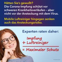 Die seit Ende 2020 verfügbaren Corona-Schutzimpfungen mit Impfstoffen von BionTech/Pfizer, Moderna, AstraZeneca und Johnson & Johnson nehmen bei der Bekämpfung der Corona-Pandemie eine Schlüsselrolle ein. In Kombination mit weiteren Hygienemaßnahmen, wie dem Tragen von Mund-Nasen-Masken, der Einhaltung von Abstandsregeln und dem Einsatz von mobilen Luftreinigern in öffentlichen Bereichen, Schulen und Pflegeeinrichtungen, soll die vierte Welle möglichst noch in diesem Winter gebrochen werden.