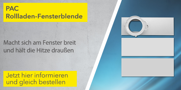 Wer eine mobile Klimaanlage nutzt und zugleich seine Rollladen dichtmachen will, weiß wovon die Rede ist: Der Abluftschlauch des Klimagerätes verhindert das finale Schließen des Rollladens! Weil der ja unten einen breiten Spalt weit offenbleiben muss, um den Schlauch hinauszuführen. Und schon strömt die warme Luft von draußen wieder zurück ins gerade gekühlte Zimmer. Das zehrt am körperlichen Wohlbefinden, an der Energiebilanz und am Geldbeutel. Deshalb ist die PAC Rollladen-Fensterblende unsere beste Empfehlung – denn mit ihr machen Sie aus dem Problembär wieder einen bis zum Ende hin schnurrenden Rollladen und sorgen drinnen effizient für dauerhaft kühle Räume.