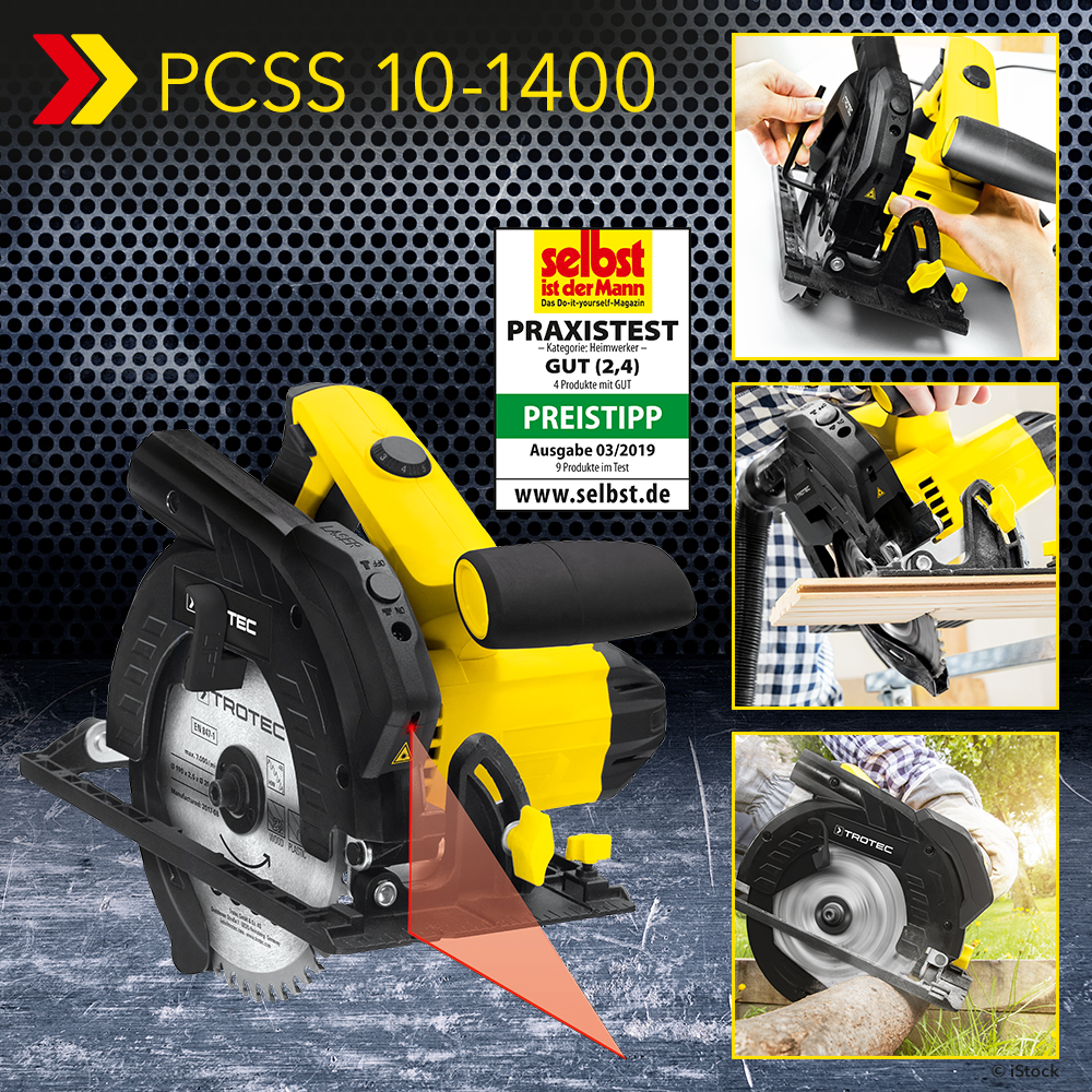 9 Kreissägen im knallharten Praxistest des renommierten Fach- und DIY-Magazin ‚Selbst ist der Mann‘ (Ausgabe 03/2019). Eine Kreissäge sägt besonders gut und günstig: Die PCSS 10-1400 von Trotec macht bei allen Tests eine so gute Figur, dass sie als Preis-Leistungs-Sieger die Auszeichnung ‚Preistipp‘ laut Redaktion „mehr als verdient hat“!