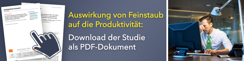 Die gesundheitlichen Folgen von Luftverschmutzung, insbesondere durch Feinstaub, sind demnach deutlich größer als bislang angenommen. Arbeitgeber sind daher gut beraten, der Raumluftqualität im Unternehmen besondere Aufmerksamkeit zu widmen und gezielte Maßnahmen wie etwa Luftqualitätsüberwachung und mobile Luftreiniger zur Verbesserung des Betriebsklimas einzusetzen. Zum Wohl der Mitarbeiter als betriebliche Gesundheitsförderung, aber ebenso, um die volle Leistungsfähigkeit der Mitarbeitenden zu fördern.