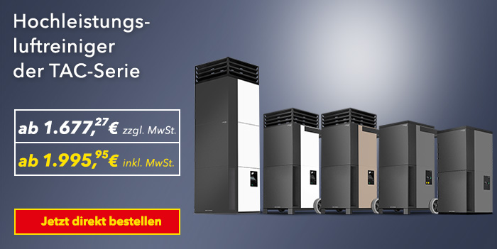 Fünf Modelle in zwei Gerätevarianten – jeweils mit nachgewiesener Filterwirksamkeit zum Schutz vor Feinstaubpartikeln und luftgetragenen Krankheitserregern machen die TAC-Serie zur flexiblen und skalierbaren Luftreinigungslösung für Arbeitsräume in industriell geprägten Umgebungen (Industriegebiete)