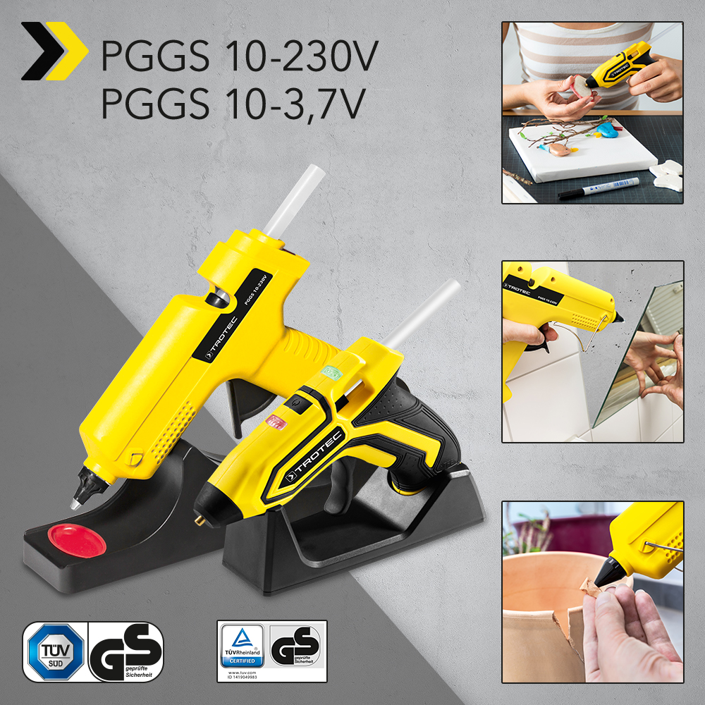 Beide Heißklebepistolen besitzen mit Brief und Siegel bestätigte TÜV-Qualität