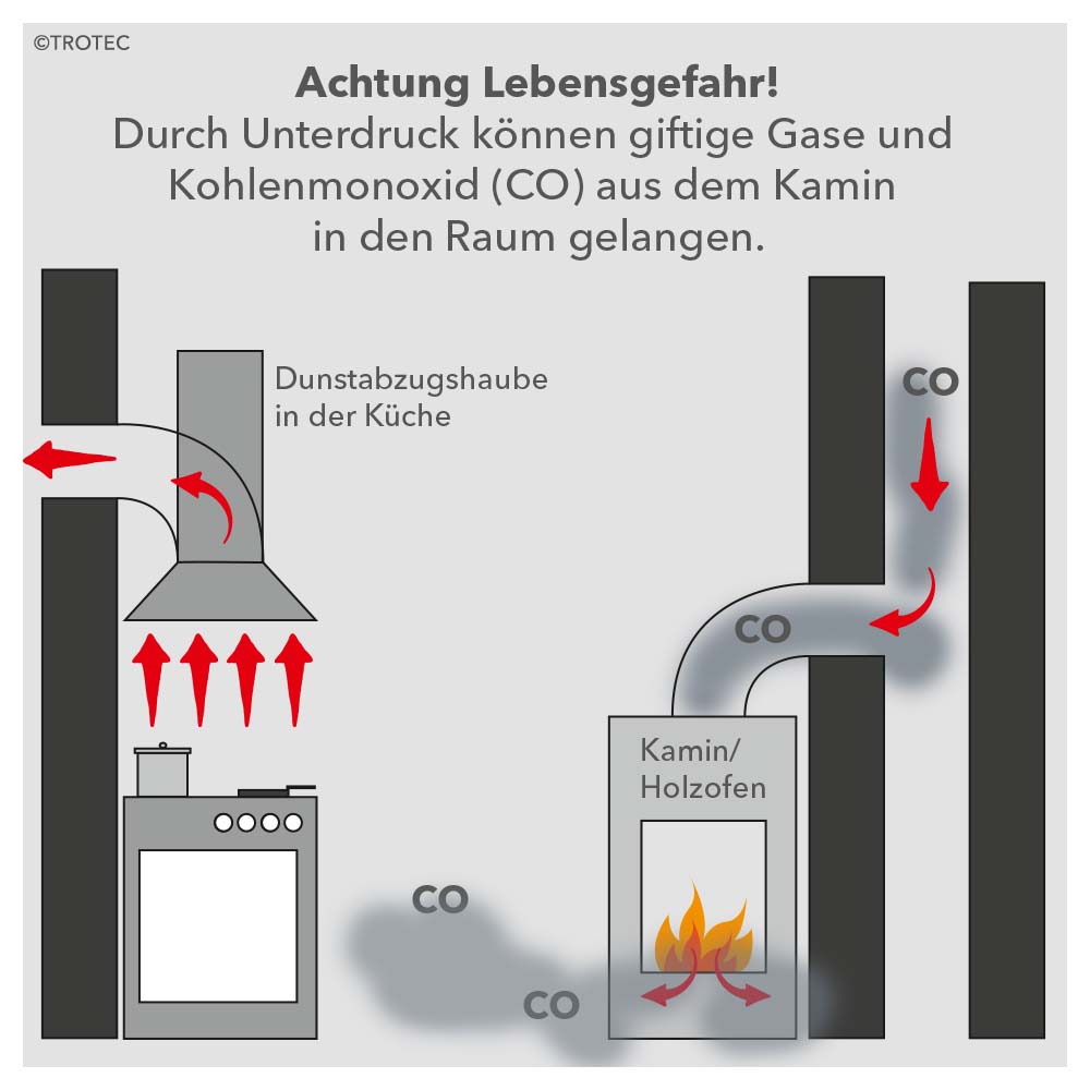 Kamine und in die Jahre gekommene Holzöfen, die vor der Energiekrise zumeist nur noch dekorative Zwecke erfüllten, sind wieder beliebt wie lange nicht, weil sie vergleichsweise günstig angenehme Wärme im Wohnraum verbreiten. Gleichzeitig sind Kaminöfen aber auch eine der größten Feinstaubquellen, mehr noch als Pkws. Denn während bei Verbrennungsmotoren hochwirksame Partikelfilter den Ausstoß von krebserregendem Ruß verhindern, fehlen diese bei Holzöfen zumeist völlig. Bei älteren Kaminen oder Öfen besteht zudem die Gefahr, dass aufgrund von Raumströmungen, witterungsbedingten Schwankungen des Schornsteinunterdrucks oder Problemen im Kamin Kohlenmonoxid (CO) entsteht und in den Wohnbereich austritt. Kohlenmonoxid ist ein geruch- und geschmackloses Gas, das zu starken Vergiftungserscheinungen führen kann.
