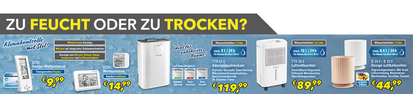 *Die Artikel liegen in begrenzter Menge vor und können daher bereits am ersten Aktionstag ausverkauft sein. Abgabe nur an Endverbraucher in haushaltsüblichen Mengen. Die Aktions-Preise im STORE gelten exklusiv nur für diesen Newsletter bis Sa., 07.03.2020 und sind nur bei Trotec vor Ort in Heinsberg gültig.