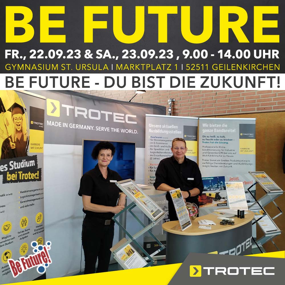 Auch wir sind dort vertreten und beantworten Euch gerne alle Fragen. Ob Techniker/in, Kaufleute, Vertriebsprofi oder Marketingfachkraft – verwirklicht Euren Berufswunsch! Bei TROTEC könnt Ihr sofort zeigen, was in Euch steckt. Bringt alle Eure Ideen und Talente ein – vom ersten Tag an, schnell und direkt. Wir unterstützen Euch dabei.