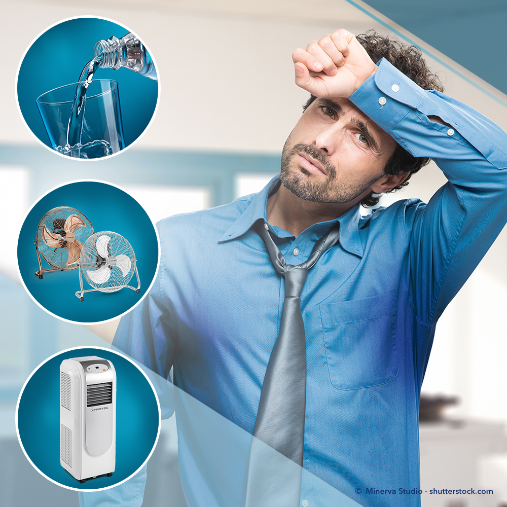 Die einfachste und günstigste Lösung. Der von Ventilatoren produzierte Wind erzeugt auf der geschwitzten Haut sogenannte Verdunstungskälte. Die Luft wird gefühlt spürbar kälter, auch wenn sie nach wie vor die gleiche Raumtemperatur besitzt. Trotec bietet hier mit seiner trendigen TVE-Serie und seiner TVM-Classic-Design-Serie eine große Vielzahl von ebenso günstigen wie leistungsstarken Geräten an, perfekt passend zu jeder Art von Büroausstattung. Doch der Arbeitgeber ist nicht per Gesetz zur Anschaffung verpflichtet.