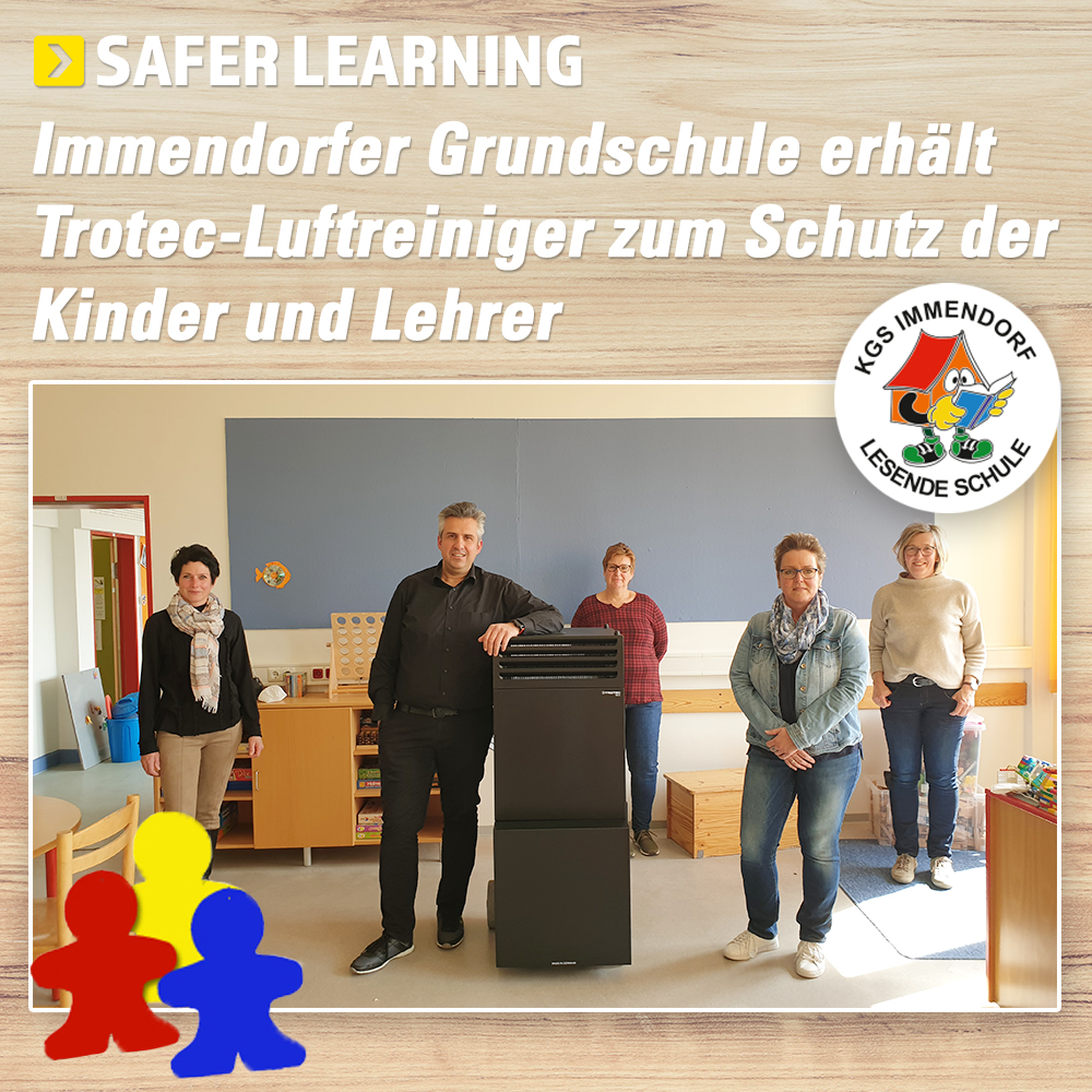 Gibt es in Zeiten der Corona-Pandemie etwas Dringenderes als die Gesundheit der SchülerInnen und LehrerInnen zu schützen? Nein, entschied der Förderverein KGS Immendorf! Da es mittlerweile wissenschaftlicher Konsens ist, dass sich das Coronavirus SARS-CoV-2 über die Luft verbreitet und nahezu 99 % aller Corona-Ansteckungen in Innenräumen erfolgen, bestellte der Verein drei TAC V+ Hochleistungsluftreiniger für die Katholische Grundschule Immendorf. Natürlich wird in den Klassenräumen mit Beginn des Präsenzunterrichtes auch weiterhin gelüftet. Durch den Einsatz der mobilen Luftreiniger wird der Infektionsschutz in den Klassen aber noch einmal deutlich erhöht, insbesondere mit Blick auf die für Kinder gefährlichere Corona-Mutation B.1.1.1.7.