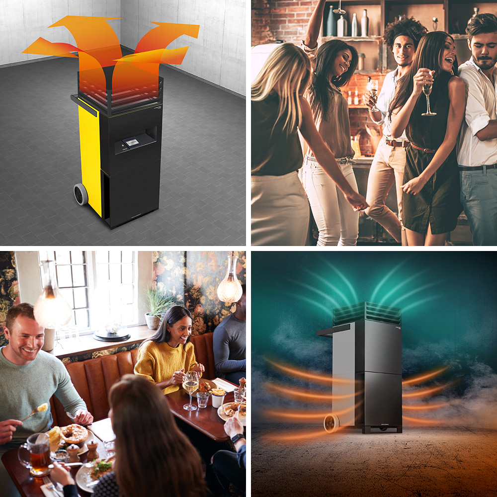 - Saubere, luftgefilterte, kondensatfreie Wärme – optimal für geschlossene Räume