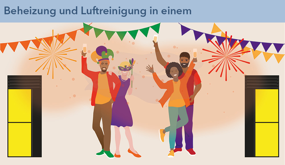 Eine besonders interessante Anwendungsmöglichkeit im Karneval eröffnet sich Veranstaltern mit der Modelvariante TAC XT. Ausgestattet mit einer 18 oder 27 kW starken Hochleistungs-Innenraumbeheizung stellt der TAC XT zugfreie Warmluft mit 360°-Wirkradius im gesamten Raum bereit und kann zudem zum Anschluss eines Gewebeluftverteilers oder an Luftverteilsystemen genutzt werden. Durch diese zusätzliche Heizfunktion empfiehlt sich der mobile Hochleistungsluftreiniger TAC XT mit integrierter Heizfunktion als einzigartige Lösung auf dem Markt, um gleichzeitig für virengefilterte Luft (H14-HEPA-Filtersystem nach EN 1822) und wohlige Wärme (18 oder 27 kW Heizleistung) in Veranstaltungssälen, Festzelten und Hallen zu sorgen.