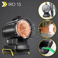 Das Infrarot-Ölheizgerät IRO 15 überzeugt mit leistungsstarker Punktbeheizung durch Strahlungswärme ohne Luftverwirbelung. Denn der Ölheizer generiert wirkungsvolle Strahlungswärme, die nicht über die Luft, sondern via Lichtwellen transportiert wird und Objekte wie Flächen sofort erwärmt. Weil bei dieser Beheizungsart verfahrensbedingt keine Luftzirkulation stattfindet, wird auch keinerlei Staub aufgewirbelt – optimal für den Einsatz in staubigen Räumen oder zur Anstrich- und Lacktrocknung. Und auch der Wind kann keinen Einfluss auf die Wärmeleistung nehmen, weshalb sich der IRO 15 zur Punktbeheizung in zugiger Umgebung empfiehlt. Das Beste: Ohne Vorheizkosten und Wartezeit gelangen so 100 % Strahlungswärme nahezu verlustfrei vom Heizgerät zum angestrahlten Objekt.