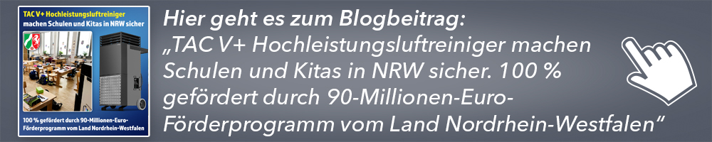 Obwohl sich Wissenschaftler und Experten nahezu einhellig für den Einsatz geeigneter Luftreinigungstechnik mit HEPA-Filtern der Filterklasse H14 (zertifiziert nach EN 1822) aussprachen, um indirekte Infektionen durch virenbehaftete Aerosole wirksam zu verhindern, dauerte es dennoch mehr als 1 Jahr, bis das Bundesland Nordrhein-Westfalen ein 90-Millionen-Euro-Förderprogramm auf den Weg brachte, um Gemeinden, Kommunen und Schulaufwandsträger beim Kauf geeigneter Geräte zu unterstützen.