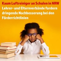 Der Gesundheitsschutz der Schüler und Lehrer dürfe nicht am Geld scheitern, sind sich Eltern und Lehrer einig. Wenn die Fördermittel aufgrund falsch gewählter Förderrichtlinien nicht abgerufen werden, dann müsse man diese schnellstmöglich anpassen. Der von den Schülern zu zahlende Preis für Schulschließungen und Erkrankungen übersteigt schon jetzt bei Weitem die Kosten einer flächendeckenden Ausstattung aller Klassenräume mit Luftreinigern.