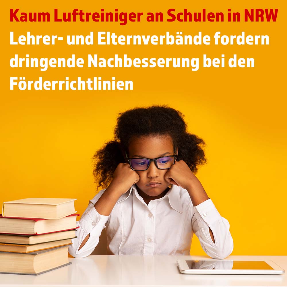 Dennoch sind selbst im dritten Jahr der Corona-Pandemie immer noch vergleichsweise wenig Schulen und Kitas mit mobilen Raumluftreinigern ausgestattet. Trotz eigens aufgelegter Förderprogramme des Bundes und der Länder. Mitte vergangenen Jahres hat der Bund Fördermittel in Höhe von mehr als 200 Millionen Euro bereitgestellt, um die Schulträger bei der Anschaffung von Luftreinigern finanziell zu unterstützen. Hinzu kommen eigene Förderprogramme der Länder. Mit 50 Millionen Euro im Jahr 2020 und weiteren 90,4 Millionen im vergangenen Jahr legte das Bundesland Nordrhein-Westfalen sogar zwei Lüftungsprogramme auf, um die Ausstattung der Klassenräume mit mobilen Luftreinigern voranzutreiben. In vielen Schulen ist davon aber nichts zu spüren. Gerade einmal 5.500 Geräte wurden über das erste Sonderprogramm für mobile Luftreiniger an Schulen beschafft. Auch das zweite Programm verzeichnet eine eher geringe Nachfrage. Bei rund 5.100 allgemeinbildenden Schulen in Nordrhein-Westfalen sind das nicht einmal zwei Geräte pro Schule. Eine Vollausstattung aller Klassenräume sieht anders aus.