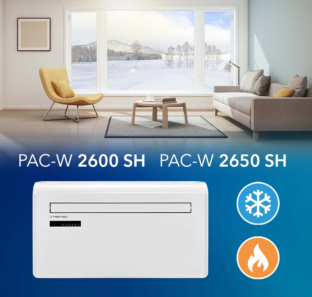 Je nach Jahreszeit kann das Heizen mit der Klimaanlage günstiger und effektiver sein, als die mit Gas betriebene Heizungsanlage zu nutzen. Insbesondere träge Fußbodenheizungen brauchen vergleichsweise lange, um eine angenehme Wärme im Raum zu erzeugen. Mit den Klimageräten PAC-W 2600 SH und PAC-W 2650 SH hingegen ist die Wärme bereits nach wenigen Minuten im gesamten Raum zu spüren. So lassen sich unerwartete Wetterumschwünge in der Übergangszeit optimal abfedern, ohne die Heizkörper aufzudrehen. Das spart teures Erdgas oder Heizöl.