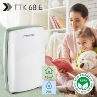 - punktet darüber hinaus mit den zwei weiteren Betriebsmodi: Im Permanent-Modus entfeuchtet der TTK 68 E die Raumluft im Dauerbetrieb. Damit Sie nicht andauernd den Wassertank leeren müssen, lässt sich ein Kondensat-Ablaufschlauch anschließen. Im Wäschetrocknungsmodus unterstützt er effektiv die Trocknung von nasser Wäsche in Wohn- oder Haushaltsräumen.