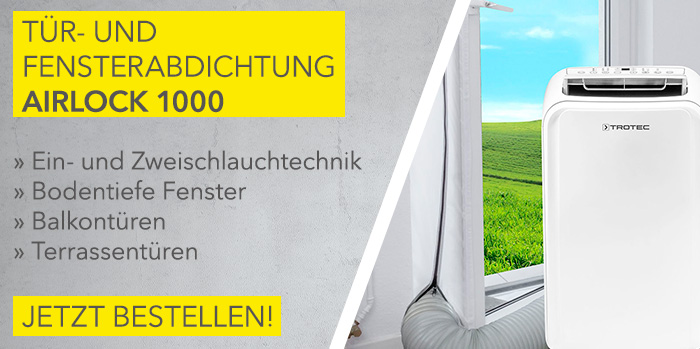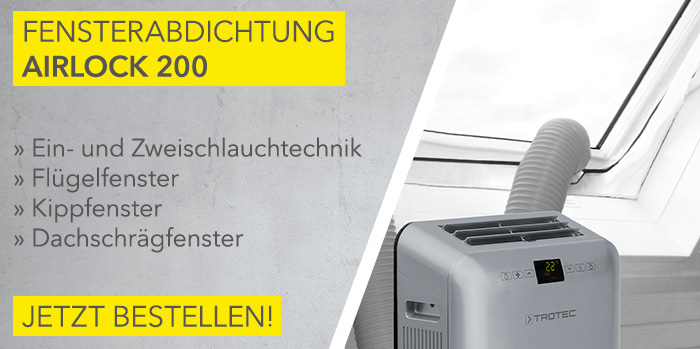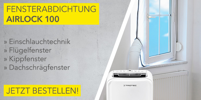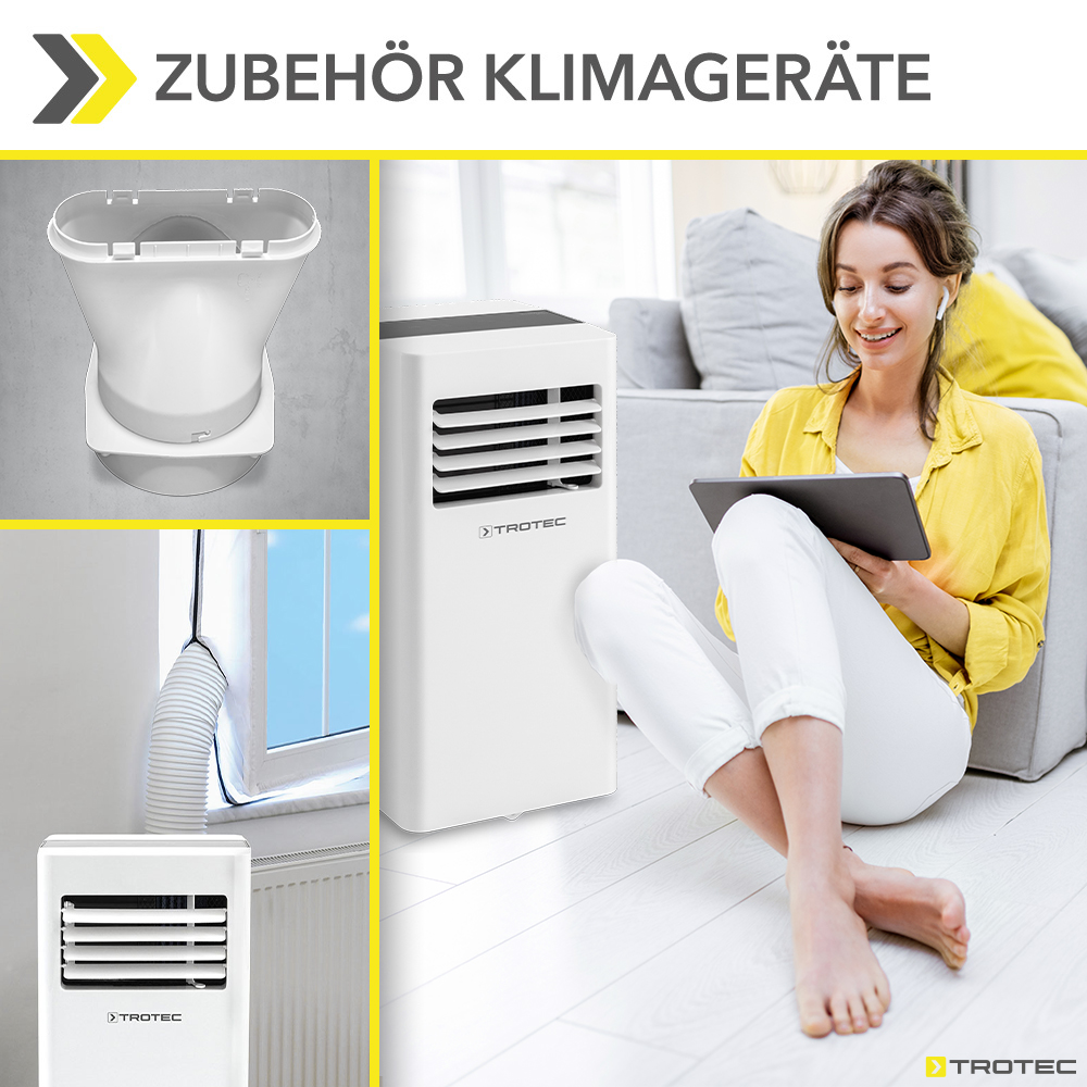 Beim Kühlen mit einem mobilen Klimagerät wird die Wärme des Raumes über den Abluftschlauch durch das geöffnete Fenster nach draußen befördert. Dabei strömt aber auch immer ein gewisser Teil warme Luft zurück in den Raum. Nahezu vollständig verhindern lässt sich der Rückstrom warmer Luft mit dem nachfolgend vorgestellten Zubehör. Entwickelt von den Trotec-Ingenieuren in Heinsberg, um die Kühleffizienz der Trotec-Klimageräte zu maximieren. Passend für nahezu alle mobilen Klimageräte mit Abluftschlauch.