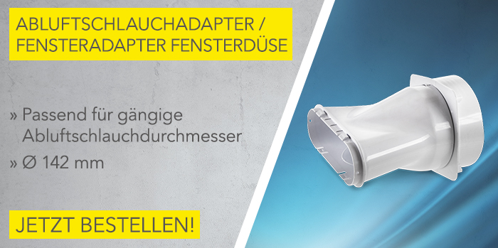- Ermöglicht die Nutzung gängiger Abluftschläuche bei schmalen Fensterschlitzen