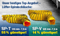 Falls Sie sich in naher Zukunft ohnehin neue Lüfter-Spiralschläuche anschaffen wollten, sollten Sie unser Angebot nutzen und jetzt zugreifen. Bei beiden Angeboten handelt es sich um gängige Schlauchgrößen, an die Sie natürlich auch Ihre eigenen Geräte anschließen können. Und in unserer Tronect®-Konnektivitätsübersicht finden Sie, welcher Schlauch sich für welches Trotec-Gerät eignet. Hier beide Top-Angebot im Detail: