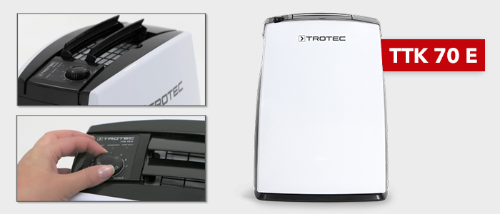 Der Luftentfeuchter TTK 70 E überzeugt sowohl dank seines ansprechenden Designs wie auch durch seine maximale Entfeuchtungsleistung von 20 Litern pro Tag bei einer Raumgröße bis 45 m². Nicht nur aufgrund seines hervorragenden Preis-Leistungsverhältnisses gehört der Entfeuchter zu den Spitzenprodukten von Trotec, sondern er begeistert auch durch sein platzsparendes und ansprechendes Design. Schauen Sie selbst, wie sich die innovativen Vorteile des TTK 70 E im Detail darstellen …