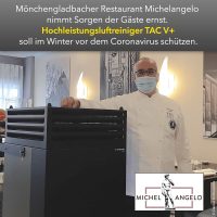 Domenico Sepe hat vorgesorgt. Um seine Mitarbeiter und Gäste auch im kalten Winter vor Coronaviren in der Luft zu schützen, ohne die Eingangstür und Fenster zum Lüften auf Durchzug zu stellen, hat der Inhaber des Mönchengladbacher Restaurant Michelangelo in einen Luftreiniger investiert. Aber nicht in irgendeinen Luftreiniger. Es sollte ein Hochleistungsgerät sein, das nachweislich vor virenbehafteten Aerosolen schützt und nicht nur einen Placebo-Schutz bietet, um die Gäste zu beruhigen. „Die Leute sind immer noch besorgt und haben sich im Freien auf der Terrasse deutlich sicherer gefühlt. Vielleicht kommen sie ja so auch im Winter“, hofft Sepe im Interview mit der Zeitung „Rheinische Post“. Seine Hoffnungen scheinen sich zu erfüllen. Die ersten Reaktionen seiner Gäste seien durchweg positiv gewesen.
