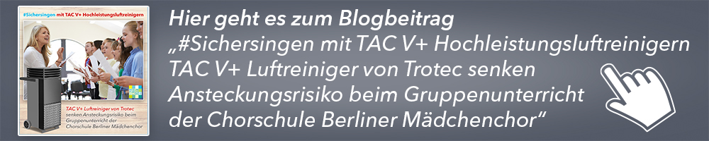 Zahlreiche Musik- und Chorschulen wie der Berliner Mädchenchor haben sich mit TAC V+ Hochleistungsluftreinigern bereits auf eine Wiedereröffnung des Präsenzunterrichtes vorbereitet. Die Luftreiniger sollen einen sicheren Gruppenunterricht ermöglich und das Ansteckungsrisiko der SchülerInnen und LehrerInnen auf ein Minimum reduzieren. Die Geräte sollen das manuelle Lüften aber nicht ersetzen: „Ich sehe das wie beim Airbag oder Sicherheitsgurt im Auto“, erklärt Markus von Arnsberg von der Berliner Chorschule die verschiedenen Säulen des Hygienekonzeptes und ergänzt: „Beide Techniken bieten in der Kombination einen bestmöglichen Schutz. Daher setzen auch wir auf die Kombination von CO2-Ampeln, Lüften und Luftreinigern.“
