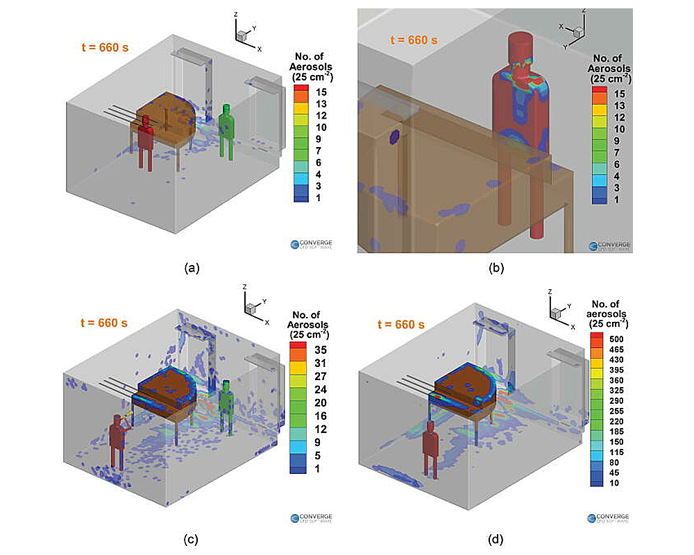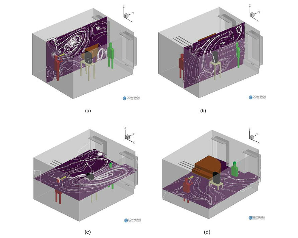 Um die Wirksamkeit von mobilen Raumluftreinigern während des Musikunterrichts zu untersuchen, analysierte der ebenfalls an der Universität Minnesota forschende Ph.D. Suo Yang, Spezialist für Raumfahrttechnik und Ingenieurswissenschaften, wie sich Aerosolpartikel während des Musikunterrichts im Klassenzimmer ausbreiten. Der Wissenschaftler simulierte mit seinem Team die Luftströmungen typischer Unterrichtsszenarien mit verschiedenen Musikinstrumenten im Raum, um die dabei entstehenden Aerosolkonzentrationen mit und ohne Luftreinigung zu quantifizieren.
