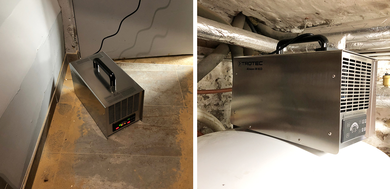 Geruchsbeseitigung: Ozonbehandlung mit Airozon® Ozon-Desinfektor beseitigt unangenehme Gerüche im Mauerwerk, im Boden und Inventar