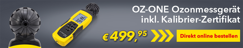 Tipp: Überprüfen lässt sich der Ozongehalt in der Raumluft nach der Behandlung mit einem Ozonmessgerät wie dem OZ-ONE. Der elektrochemische Sensor des OZ-ONE erfasst selbst kleinste Konzentrationen unterhalb der Gefährdungsschwelle zuverlässig und gibt Ihnen grünes Licht, sobald der Raum wieder einsatzbereit ist.