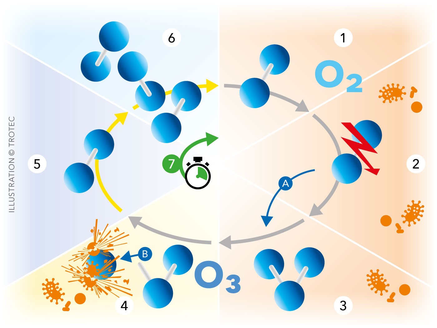 Zum Einsatz kam ein mobiler Ozongenerator der Airozon-Eco-Serie. Der Ozon-Desinfektor Airozon® 28 ECO erzeugt aus dem in der Raumluft enthaltenen Sauerstoff durch eine Entladungsreaktion Ozon (O3). Ozon ist einer der stärksten natürlich vorkommenden Sterilisatoren der Welt und aufgrund seiner bakteriziden, viruziden wie sporiziden Desinfektionseigenschaften ein wirksames Mittel zur Elimination von Mikroorganismen wie Bakterien, Sporen oder Viren. Aber auch bei der Geruchsbeseitigung setzen professionelle Dienstleister auf die Wirkungsweise von Ozon. Ozon neutralisiert Gerüche durch Oxidation.