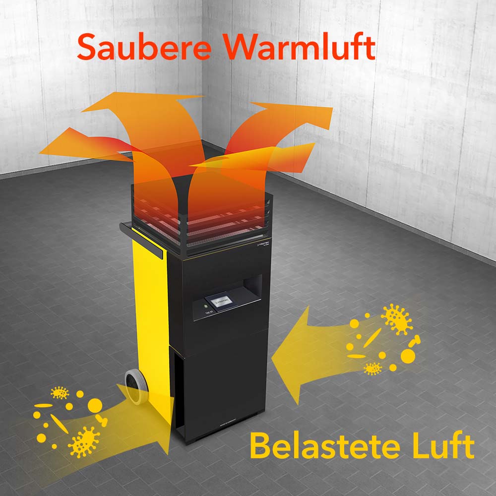 Mobile Raumluftbeheizung mit H14-HEPA-Luftreinigung