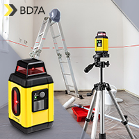 Der integrierte Laser des nur 280 g leichten BD7A ist selbstnivellierend und gleicht Bodenunebenheiten bis zu 3° Neigung vollautomatisch aus. Die Selbstausrichtung dauert nur wenige Sekunden und erfolgt unmittelbar nach dem Einschalten des Gerätes. Ist eine Selbstnivellierung aufgrund größerer Unebenheiten oder Verschmutzungen nicht möglich, signalisiert dies der Laser durch eine rot leuchtende LED sowie blinkende Laserlinien.