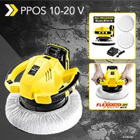 Die nötige Power bezieht die Poliermaschine PPOS 10‑20V aus einem 20 V 2 Ah starken Lithium-Ionen-Akku der Flexpower-Multiakku-Serie. Der hochwertige Premium-Markenakku vom Typ NMC, natürlich ohne Selbstentladung und Memory-Effekt, bringt seine ganze Power auch bei fortschreitender Entladung stets zum Tragen und verfügt darüber hinaus über eine 3-stufige Kapazitätsanzeige, mit der Sie den Ladezustand feststellen können, ohne dass der Akku am Gerät angeschlossen werden muss. Zur schnellen Aufladung (1 h) ist übrigens ein Schnell-Ladegerät mit automatischer Ladeabschaltung im Standard-Lieferumfang enthalten.