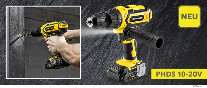 Bestellen Sie am besten noch heute den neuen Akku-Schlagbohrschrauber PHDS 10-20V inklusive montierbarem Gürtelclip, zwei Bits, Zusatz-Handgriff, Schnell-Ladegerät und Transportkoffer – jetzt im Trotec-Shop!