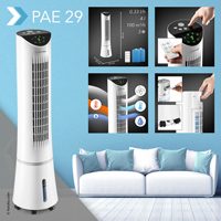 Mit dem neuen 3-in-1-Design-Aircooler PAE 29 genießen Sie in den heißen Monaten die Kombination aus frischem Ventilator-Wind und natürlicher Verdunstungskühlung. Damit blasen Sie die Sommerhitze einfach aus dem Raum und sorgen zusätzlich mittels natürlicher Verdunstungskälte nach dem Nassfilter-Prinzip für eine kühlende Erfrischung auf der Haut. Zusätzlich können Sie den Komfort-Aircooler über ein 3-stufiges Propellergebläse als erfrischenden Turmventilator nutzen. In den kühleren und kalten Jahreszeiten profitieren Sie von der Luftbefeuchtungsfunktion des PAE 29 um ein angenehmes Raumklima zu schaffen, denn Sie bewahren die Schleimhäute in Nase, Mund und Rachen vor dem Austrocknen durch die oftmals zu trockene Heizungsluft.