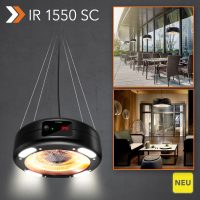 Mit dem Deckenstrahler IR 1550 SC setzen Sie auf 365 Tage Wohlfühltemperaturen – selbst an kühlen Tagen im unbeständigen Frühling und bei eisigen Außentemperaturen im Herbst bzw. Winter. Der formschöne, spritzwassergeschützte (IP24) Decken-Heizstrahler versorgt überdachte Terrassen, Balkone genauso wie Arbeitsplätze und Werkstätten sowie überdachte Sitz- und Stehplätze in der Außengastronomie sekundenschnell mit sommerlich warmen Temperaturen. Denn gleich zwei leistungsstarke Halogen-Röhren mit drei Heizstufen (600 W / 900 W / 1500 W) liefern Ihnen stets so viel wohltuende Sofortwärme, wie es Einsatzort und Einsatzweck erforderlich machen. Das Beste: Bei Bedarf können Sie vier lichtstarke LED-Strahler zuschalten, nutzbar übrigens auch ohne aktivierte Heizung. Und die Wahl der Heizstufen und Betriebsmodi erledigen Sie bequem und einfach über die handliche Infrarot-Fernbedienung.