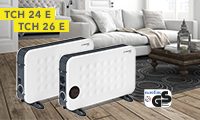 Kurz, die neuen Design-Konvektoren der TCH-Serie eignen sich für nahezu jeden Einsatz im privaten Umfeld. Auch beispielsweise als Frostwächter in ungeheizten Kellern und Garagen sind die Heizlüfter hervorragend einsetzbar. Dabei überzeugen die beiden Modelle TCH 24 E und TCH 26 E trotz ihrer starken, in 3 Stufen schaltbaren Heizleistung mit einem erfreulich geringen Energieverbrauch. Denn Sie können anhand ihres thermostatgesteuerten Automatikbetriebs ganz einfach Ihre Wunsch-Wärmeleistung einstellen: Das Thermostat setzt Ihre Zielvorgabe um und reguliert bis hin zur automatischen Ab-/Anschaltung selbstständig und energieeffizient die Heizleistung.