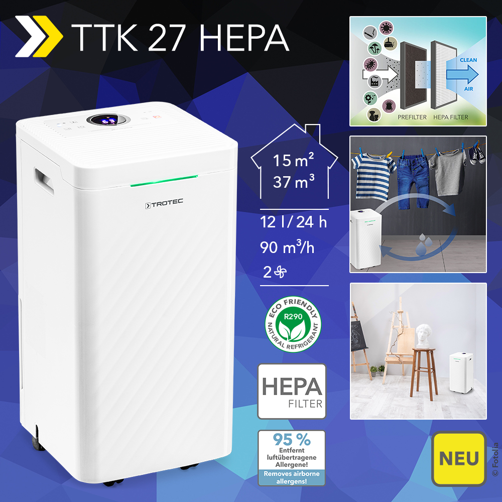 Komfort-Luftentfeuchter TTK 27 HEPA – Markenqualität von Trotec!
