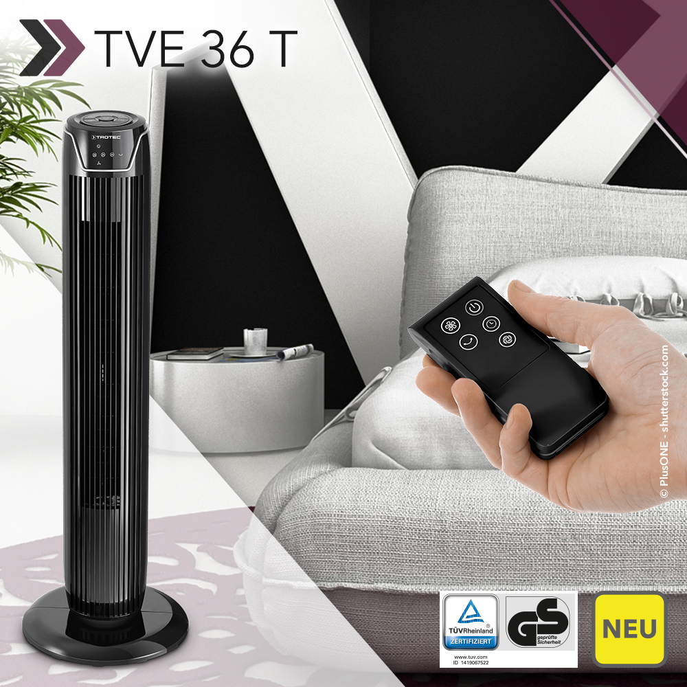 Dieses Trotec-Produkt erhalten Sie in TÜV-geprüfter Qualität als Garant für hohe Wertigkeit, Sicherheit und Funktionalität. Bestellen Sie am besten noch heute den Turmventilator TVE 36 T zu unserem aktuellen Angebotspreis statt für 89,94 € für nur noch 79,94 € inkl. MwSt. – jetzt im Trotec-Shop!