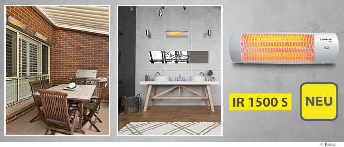 Wir nähern uns der Übergangszeit. In der etwa die Heizung gerne mal etwas niedriger eingestellt wird – mit der Folge eines morgendlichen Frierens bereits im Bad. Wo man nachmittags auf der Veranda sitzen möchte, sich aber fragt, ob die Sonne schon genug Wärme entwickelt oder doch eher eine Erkältung droht. Hier wie dort wird sofortige punktuelle Wärme ohne lange Anlaufzeit benötigt – und die liefert als optimale Lösung der Quarz-Heizstrahler IR 1500 S. Ganz gleich, ob im Badezimmer, über dem Baby-Wickeltisch, an der Werkbank im Hobbykeller, auf der Terrasse oder wo auch immer: unser neuer praktischer Allrounder heizt per Infrarotstrahlung die direkte Umgebung vom ersten Moment an wohlig warm auf.