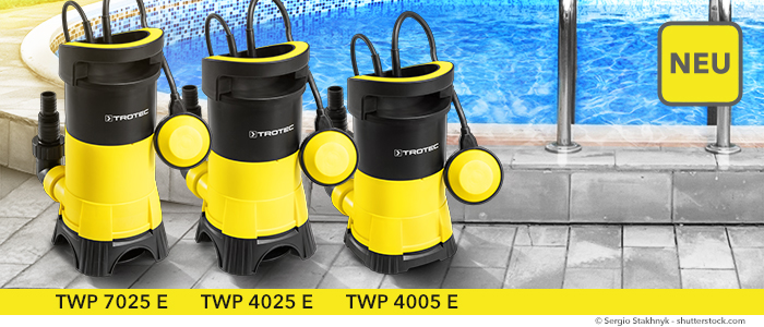 Trotec springt für Sie gerne ins kalte Wasser – mit unseren neuen Marken-Tauchpumpen für Klar- und Schmutzwasser. Zuverlässig einsetzbar bei allen Be- und Entwässerungsaufgaben, sind sie aufgrund ihrer Leistungsstärke selbst extremen Anforderungen gewachsen. Die High-Performer stehen für Markenqualität und professionelle Lösungen mit ausgezeichnetem Preis-Leistungs-Verhältnis – und wenn Sie bis Ende der KW 25 bestellen, sparen Sie mit unserem Deal!