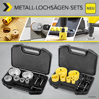 Für jede Anwendung und jedes Material finden Sie bei uns den passenden Sägekranz. Einfach bestellen, auspacken und in das Bohrfutter gängiger Bohrmaschinen einspannen, Bohrloch anzeichnen und schon geht’s los: Die scharfen Zähne der Sägekränze zerspanen das zu bearbeitende Material mühelos und ermöglichen kreisrunde Ausschnitte aus Holz, Gipskarton, Leichtblechen, Fliesen, Putz und Beton. Übrigens, trotz aller DIN-Normen erfordern die gängigsten Anwendungen immer noch unterschiedliche Sägekranz-Durchmesser. Ebenso spielt die Härte der zu bearbeitenden Materialien eine wichtige Rolle bei der Auswahl der passenden Lochsäge. Deshalb bieten wir Ihnen zwei Sets für weiche und harte Materialien – die Lochsägen-Sets aus HSS Bi-Metall und aus Karbid (Hartmetall).