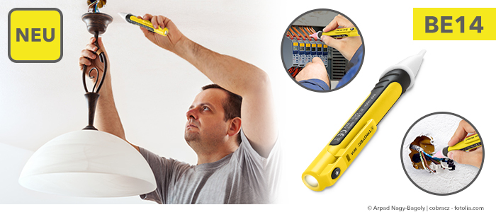 Eben mal rasch die neue Lampe anschließen, schon ist es passiert: man bekommt eine ‚gewischt‘, weil der Leiter noch Strom führte. Dabei ließe sich solch ein ‚vermeidbarer Fehler‘ ganz leicht ausschließen – mit dem neuen Spannungsdetektor BE14, einem berührungslosen Phasenprüfer, mit dem Sie immer auf der sicheren Seite sind. Das sind Sie auch mit unserem aktuellen Angebot.