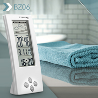 Das BZ06 ist sowohl Thermometer wie Hygrometer sowie zugleich auch Uhr inklusive einer Weck- und Kalenderfunktion. So misst die Klimastation regelmäßig in einem 20-sekündigen Intervall die Temperatur und die relative Luftfeuchtigkeit und speichert deren Minimal- und Maximal-Werte. Die Werte für Temperatur und Luftfeuchtigkeit sowie Uhrzeit, Wochentag und Datum werden auf dem gut ablesbaren LCD-Display des BZ06 in großen Ziffern angezeigt. Eine Alarmfunktion sowie der Wecker mit Schlummerfunktion machen den Ausstattungskomfort dieser Innenraum-Klimastation perfekt.