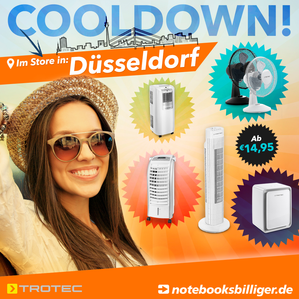 Auch in Düsseldorf wird’s in den nächsten Tagen ganz schön warm. Für alle, die dabei nicht ins Schwitzen kommen möchten, gibt’s jetzt die Trotec Anti-Hitze-Produkte wie Luftentfeuchter, mobile Klimageräte, Luftkühler sowie Ventilatoren zu unschlagbar günstigen Preisen direkt zum Mitnehmen vor Ort: im Store von notebooksbilliger.de in Düsseldorf. Ohne Zeit zu verlieren quasi direkt von der Schwüle in die große Kühle: zu Hause oder im Büro aufstellen, einstecken, fertig! Und einfach cool die Entspannung genießen!