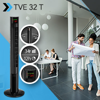 Große Räume bei der steigenden Hitze angenehm zu temperieren, ist eine große Herausforderung. Doch das gilt nicht für den ‚großen Bruder‘ des etwas kleineren und ebenfalls bereits verfügbaren TVE 31 T, den jetzt endlich lieferbaren Turmventilator TVE 32 T. Denn der ist mit seiner eindrucksvollen Größe von 112 cm ganz weit vorne, wenn eine möglichst großflächige erfrischende Raumluftverteilung erwünscht ist. Ansonsten gleichen sich die beiden Brüder wie zwei eineiige Zwillinge – bis auf den Größenunterschied …
