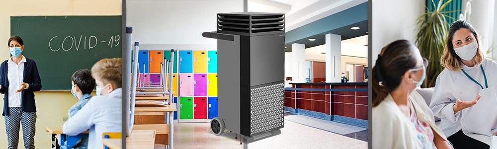 Hochleistungs-Luftreinigung mit integrierter Filterdekontamination ermöglicht eine dauerhaft virenfreie Raumluft – zum Beispiel in Schulen, Behörden oder Pflegeeinrichtungen.