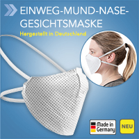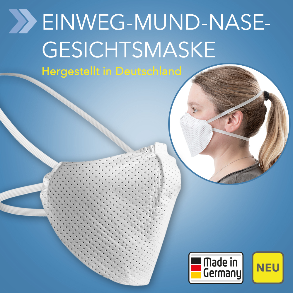 Unsere in Deutschland gefertigten Einweg-Mund-Nasen-Gesichtsmasken sind aus einem hochwertigem Meltblown-Filtervlies gefertigt, das auch für die Herstellung medizinischer FFP3-Atemschutzmasken verwendet wird. Die Prüfingenieure des deutschen Prüfzentrums fiatec Filter & Aerosol Technologie GmbH attestieren dem verwendeten Filtervlies eine Filterleistung von 99,5 % – natürlich normgerecht nach DIN 71460-1. Darüber hinaus verfügen unsere Community-Masken neben dem speziellen Zuschnitt über eine so perfekte Nähform, dass ein Metall-Nasenbügel überflüssig wird. Die beiden elastischen Gummibänder garantieren den ebenso luftdicht abschließenden wie druckfreien Sitz unserer Community-Maske.